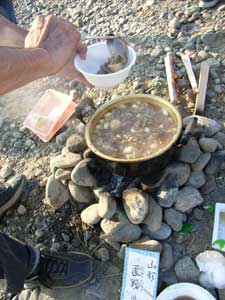 東北では秋にあちこちで、この芋煮が行われるそーで、東北出身の人たちは東京でもあっちこっちでこの芋煮をやっているそうな。