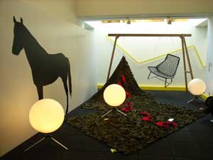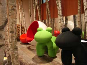特にチェックしていたわけではないのですが、週末街に出たら、東京ではデザイン・ウィークなるものが開かれていたんですねえ。まずはフィンランド・カフェ終焉のフリー・マーケットをのぞきにゆく。なにも買わなかったけど、この子達にのっかってみたかったわ。つなみに後ろのカプセルみたいな椅子は70万円で売ってました。買えねえって。