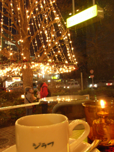 ガラス張りの外の大銀杏の木につけたライトが点灯して、めっさきれーい。
