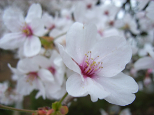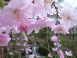 雨が降ってきたけど、雨粒のついた桜もオツじゃないですか。