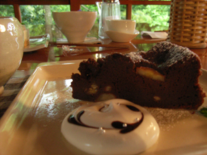 いただいたバナナショコラガトー、しっとりしてて甘さ抑え目で美味。