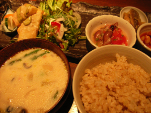 自然食材を使ったお店で、健康的なディナープレート。