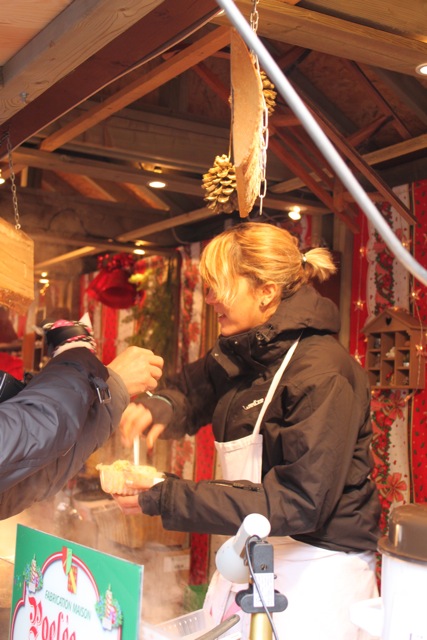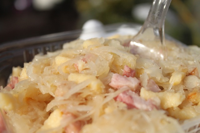 どっちも屋台のものをいただきました。シュークルートすんごい山盛り。