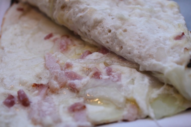 タルトフランベは玉ねぎの薄焼きピザ。
