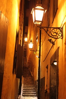 夜の旧市街、ガムラ・スタンのオレンジの街灯り